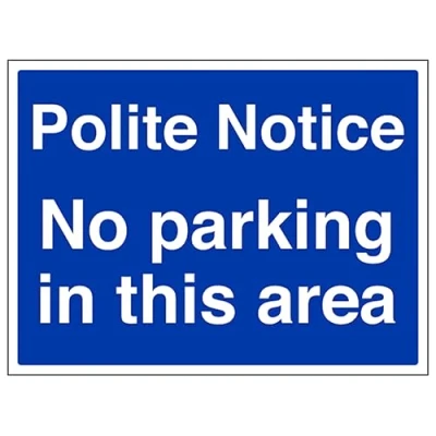 V Safety Polite Notice No Parking In This Area 600 x 450 mm 3mm Reflective Aluminium Composite Sign