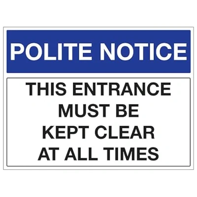 V Safety Polite Notice This Entrance Must Be Kept Clear At All Times Landscape 600 x 450 mm 3mm Reflective Aluminium Composite Sign