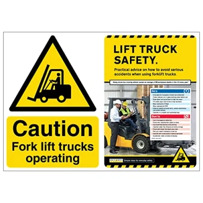 Keep staff and visitors safe – ISO compliant sign warns of Fork lift trucks operating in the area, and the poster alongside it provides relevant safety guidance Get an ISO compliant sign and safety poster all in one – no need to buy separately! Increase health and safety awareness in your workplace Made from durable materials that will last for years in any environment, Easy to keep clean – keeps your sign/poster combo looking fresh and new Available in fully recyclable Standard 0.2mm Flexi-Plastic or 2mm Rigid Plastic 2mm Rigid Plastic sign/poster combo's are supplied with self-adhesive tabs for affixing