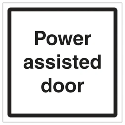 V Safety Power Assisted Door 150 x mm 2mm Rigid Plastic Sign