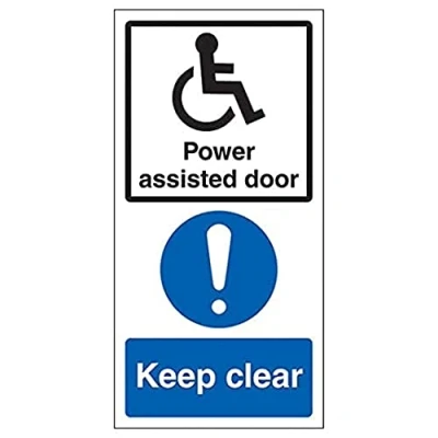 A quick and easy way of warning that doors will open automatically when they are approached Our multi-message automatic door signs help promote door safety and warn that automatic doors are in operation Supplementarity message to help direct pedestrian traffic and promote general safety Compliant to the Safety Signs and Signals Regulations and EN ISO 7010 where applicable Easy to apply