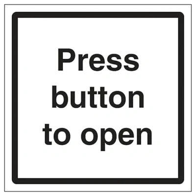 V Safety Press Button To Open 150 x mm 3mm Aluminium Composite Sign
