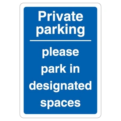 V Safety Private Parking Please Park In Designated Spaces Blue 210 x 297 mm (A4) 3mm Reflective Aluminium Composite Sign