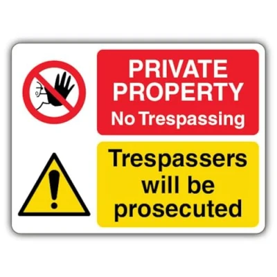 V Safety Private Property No Trespassing Trespassers Will Be Prosecuted Sign 300 x 225 mm Glow In The Dark 1mm Rigid Plastic