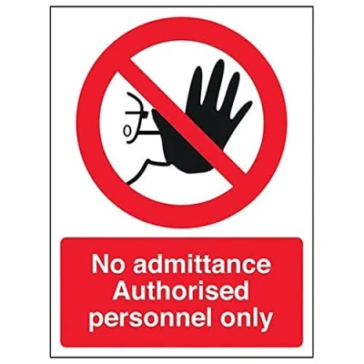 V Safety Prohibition Access No Admittance Authorised Personnel Only Hand 200 X 300mm