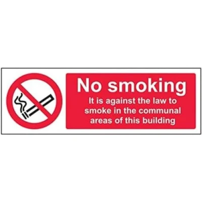 V Safety Prohibition No Smoking Against Law to Smokein Communal area 300 x 100 mm Sign