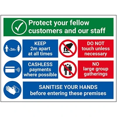 Highly visible design with clear messaging presents actions taken to ensure your premises is Covid-Secure Ideal for display around all types of retail stores - demonstrates a commitment to enforcing necessary hygiene practices to maintain a Covid-secure environment Significantly more professional in appearance than self-printed materials Highly durable - made from either durable rigid plastic or self-adhesive flexible vinyl Easy to apply - both sign types come with their own adhesive which is suitable for smooth, non-porous surfaces. Rigid plastic signs can be fixed to other surfaces using screws (not supplied), Weight: 0.2866009406 pounds, Manufacturer: VSafety