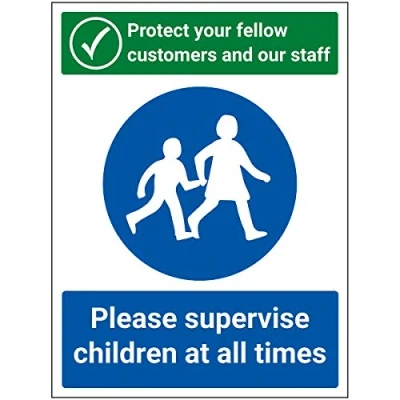 V Safety Protect Staff And Customers Supervise Child Sign 200mm x 300mm Self Adhesive Vinyl