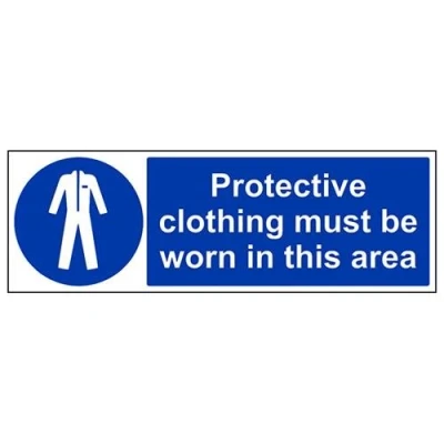 Helps to fulfil legal obligations to remind staff and visitors to wear the appropriate PPE when required to ensure personal safety as per Health and Safety (Safety Signs & Signals) Regulations 1996 Conforms to EN ISO 7010:2012 - Mandatory Signs feature a round symbol with a blue background of at least 50% of the total sign area with a white pictogram and text Landscape Orientation. Sign reads "Protective Clothing Must Be Worn In This Area" Highly durable Self Adhesive Vinyl material and screen printed message will stand the test of time Sign measures 600 x 200mm. Self Adhesive material will adhere securely to most surfaces