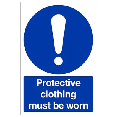 V Safety Protective Clothing Must Be Worn Portrait 150 x 200 mm 2mm Super Tough Rigid Plastic Sign
