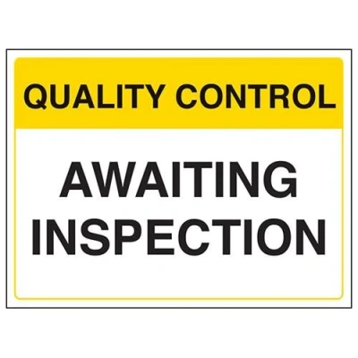 Landscape Orientation. Sign reads "Quality Control. Awaiting Inspection" Highly durable 1mm plastic material and screen printed message will stand the test of time Sign measures 400 x 300mm 0 0