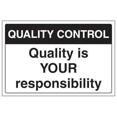 V Safety Quality Control Is Your Responsibility 300 x 200 mm 2mm Super Tough Rigid Plastic Sign