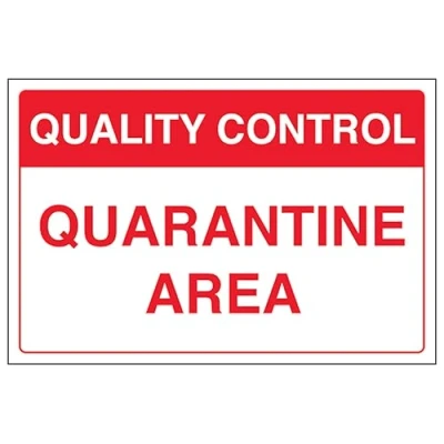 V Safety Quality Control Quarantine Area 300 x 200 mm 2mm Rigid Plastic Sign