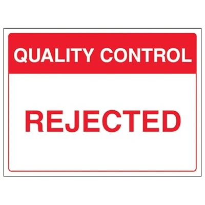 V Safety Quality Control Rejected 300 x 200 mm 2mm Rigid Plastic Sign
