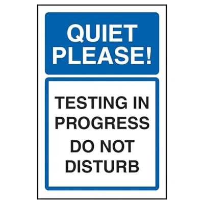 V Safety Quiet Please! Testing In Progress Do Not Disturb 200 x 300 mm 2mm Super Tough Rigid Plastic Sign