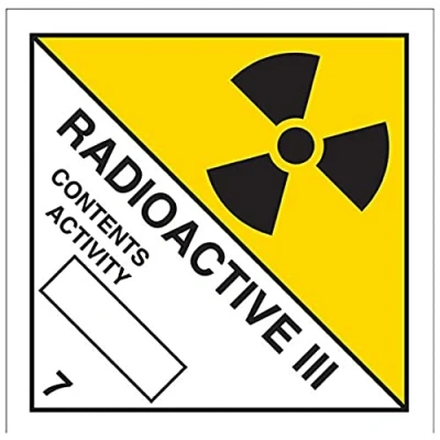 Helps to fulfil legal obligations to inform employees, visitors and the general public of potential hazards as per Health and Safety (Safety Signs & Signals) Regulations 1996 Conforms to EN ISO 7010:2012 - Warning signs feature a triangular symbol with a black pictogram and yellow background occupying at least 50% of the total sign area Square Orientation. Sign reads "Radioactive III. Contents Activity" Highly durable Self Adhesive Vinyl material and screen printed message will stand the test of time Sign measures 100 x 100mm. Self Adhesive material will adhere securely to most surfaces