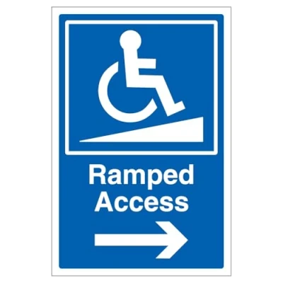 Directs individuals to the ramped access point, ensuring clear navigation for those requiring a step-free route. Built for durability, with options including 2mm super-tough rigid plastic or 2mm rigid plastic, both designed to withstand heavy use and wear over time. Simple and hassle-free installation, as the rigid plastic signs come with pre-applied adhesive, making it quick and easy to mount them in the desired location. Available in various sizes and materials – Choose the perfect fit for your needs with options designed for versatility and durability. Fully compliant with EN ISO 7010:2020 safety standards, providing peace of mind that your signage meets the latest regulatory requirements