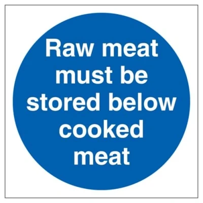 V Safety Raw Meat Must Be Stored Below Cooked 100 x mm 3mm Aluminium Composite Sign