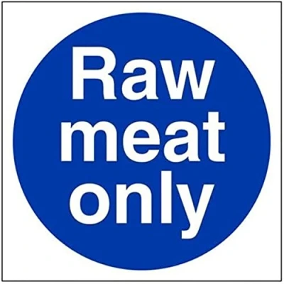 V Safety Raw Meat Only Sign 200mm x Self Adhesive Vinyl
