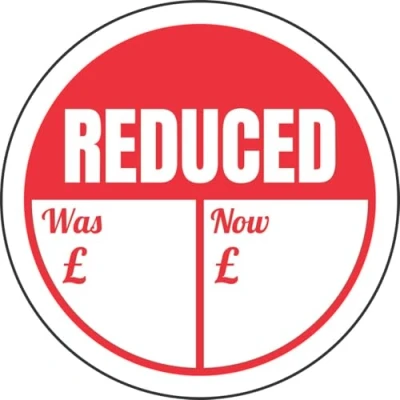 V Safety Reduced Was / Now Sticker 50mm Diameter (Roll of 250)
