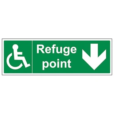 V Safety Refuge Point Arrow Down Landscape 450 x 150 mm 2mm Rigid Plastic Sign