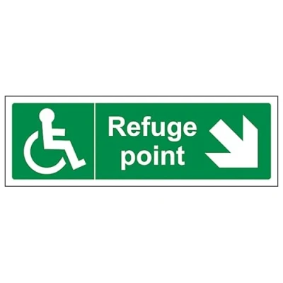 V Safety Refuge Point Arrow Down Right Landscape 300 x 100 mm 2mm Rigid Plastic Sign