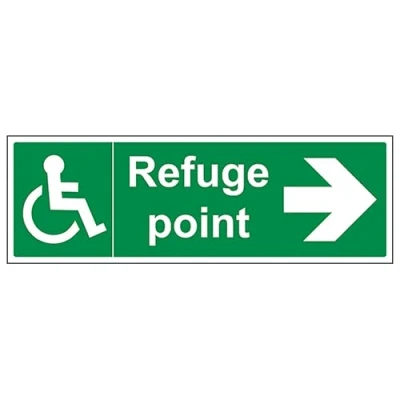V Safety Refuge Point Arrow Right Landscape 300 x 100 mm 2mm Rigid Plastic Sign