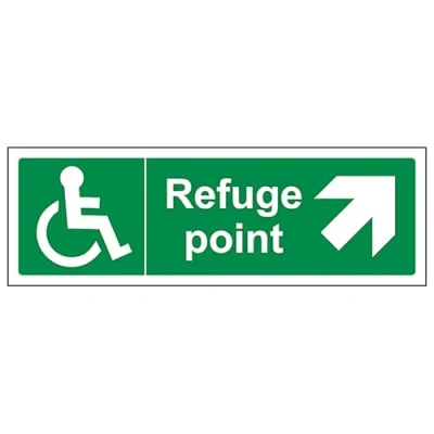 V Safety Refuge Point Arrow Up and Right Landscape 300 x 100 mm Self Adhesive Vinyl Aluminium Effect Sign