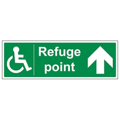 V Safety Refuge Point Arrow Up Landscape 450 x 150 mm 2mm Rigid Plastic Sign