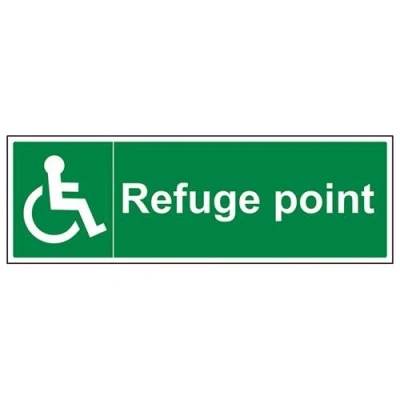 Helps to fulfil legal obligations to inform of the direction in which safety can be reached as per Health and Safety (Safety Signs & Signals) Regulations 1996 Conforms to EN ISO 7010:2012 by featuring a green background with a white pictogram or text positioned centrally Landscape Orientation. Sign reads "Refuge Point" Highly durable Self Adhesive Vinyl material and screen printed message will stand the test of time Sign measures 600 x 200mm. Self Adhesive material will adhere securely to most surfaces
