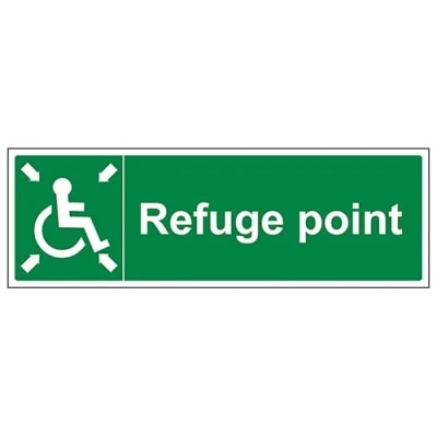 V Safety Refuge Point with Arrows Landscape 450 x 150 mm 3mm Brushed Aluminium Composite Sign