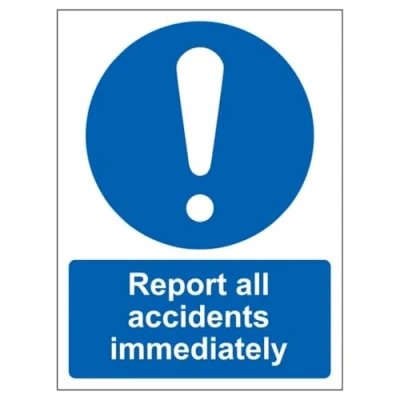 V Safety Report All Accidents Immediately Portrait 200 x 300mm 2mm Rigid Plastic Sign