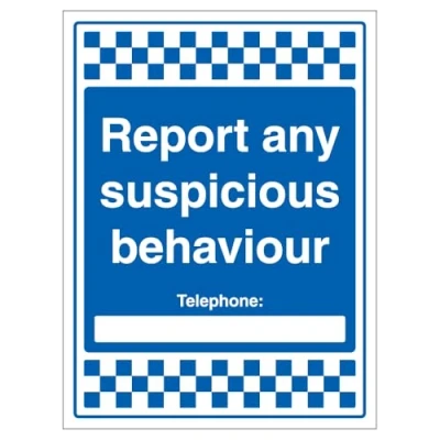 V Safety Report Any Suspicious Behaviour Telephone 300 x 400mm 1mm Rigid Plastic Sign