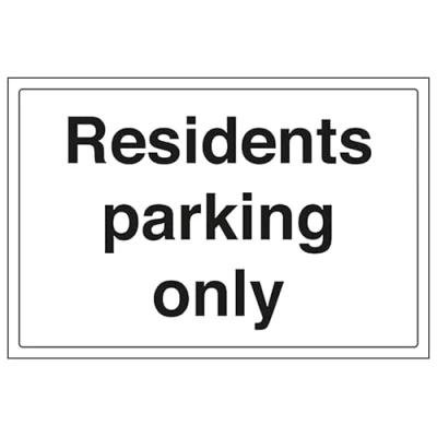 V Safety Residents Parking Only 400 x 300 mm 2mm Super Tough Rigid Plastic Sign