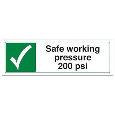 V Safety Safe Working Pressure 200 Psi Landscape 300 x 100 mm Glow In The Dark Self Adhesive Vinyl Sign