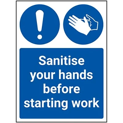 V Safety Sanitise Your Hands Before Starting Work 150mm x 200mm Self Adhesive Vinyl