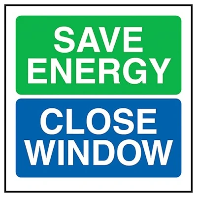 V Safety Save Energy Close Window 100 x mm Glow In The Dark Self Adhesive Vinyl Sign