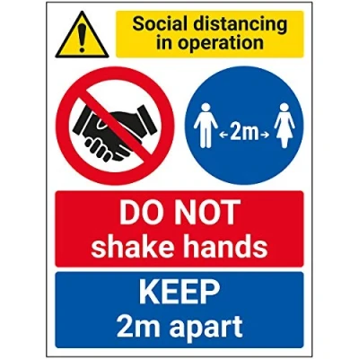 V Safety SD In Operation Do Not Shake Hands Keep 2m 300mm x 400mm Self Adhesive Vinyl