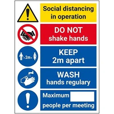 V Safety SD In Operation Keep 2m Apart Wash Hands 300mm x 400mm Self Adhesive Vinyl