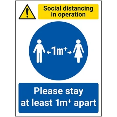 V Safety SD In Operation Stay 1M Apart 150mm X 200mm Self Adhesive Vinyl