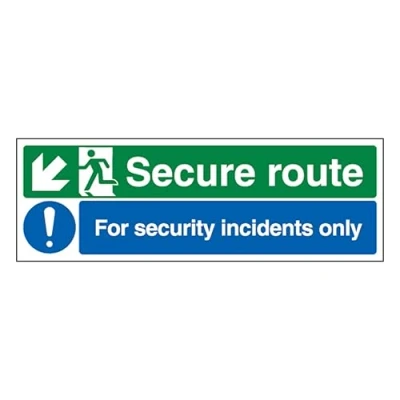 V Safety Secure Route Arrow Down Left/Security Incidents Only 450 x 150 mm 1mm Rigid Plastic Sign
