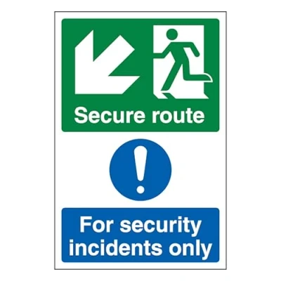 V Safety Secure Route Arrow Down Left/Security Incidents Only Portrait 200 x 300 mm Self Adhesive Vinyl Sign
