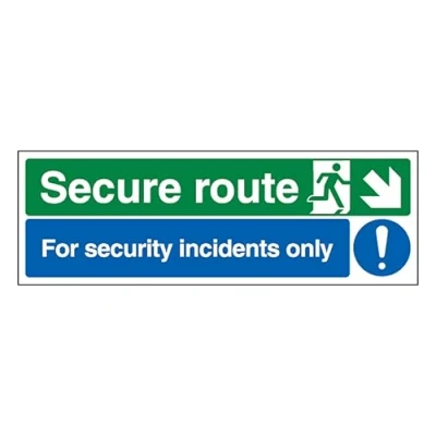 V Safety Secure Route Arrow Down Right/Security Incidents Only 300 x 100 mm Perspex Clear Cast Acrylic Sign