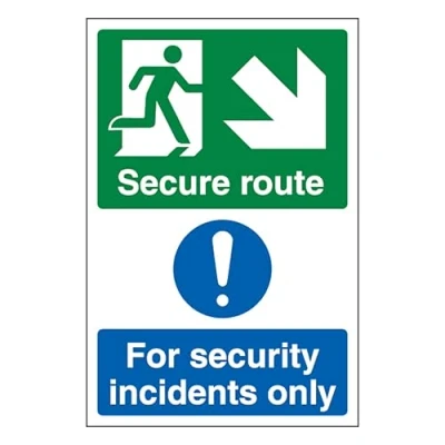 V Safety Secure Route Arrow Down Right/Security Incidents Only Portrait 200 x 300 mm Self Adhesive Vinyl Sign