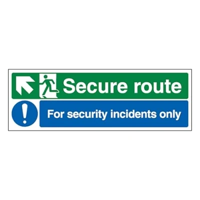 V Safety Secure Route Arrow Up Left/Security Incidents Only 450 x 150 mm 2mm Rigid Plastic Sign