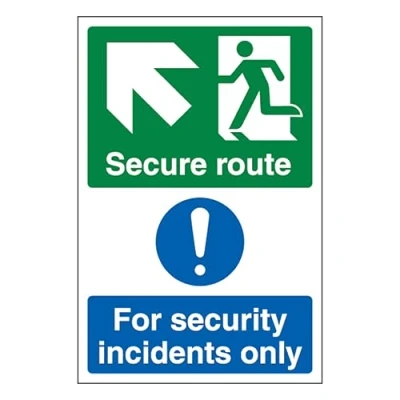 V Safety Secure Route Arrow Up Left/Security Incidents Only Portrait 200 x 300 mm Self Adhesive Vinyl Sign