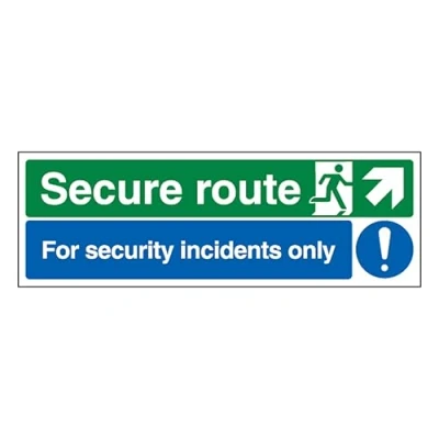 V Safety Secure Route Arrow Up Right/Security Incidents Only 450 x 150 mm 1mm Rigid Plastic Sign