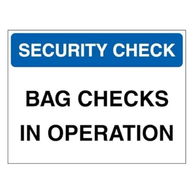 V Safety Security Check Bag Checks In Operation Blue 400 x 300 mm Self Adhesive Vinyl Sign