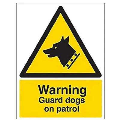 Helps to fulfil legal obligations to inform employees, visitors and the general public of potential hazards as per Health and Safety (Safety Signs & Signals) Regulations 1996 Conforms to EN ISO 7010:2012 - Warning signs feature a triangular symbol with a black pictogram and yellow background occupying at least 50% of the total sign area Portrait Orientation. Sign reads "Warning Guard Dogs On Patrol" Highly durable 1mm plastic material and screen printed message will stand the test of time Sign measures 300 x 400mm