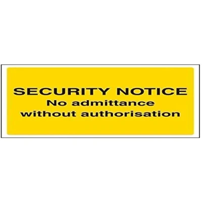 Helps to fulfil legal obligations to inform employees, visitors and the general public of potential hazards as per Health and Safety (Safety Signs & Signals) Regulations 1996 Conforms to EN ISO 7010:2012 - Warning signs feature a triangular symbol with a black pictogram and yellow background occupying at least 50% of the total sign area Landscape Orientation. Sign reads "Security Notice. No Admittance Without Authorisation" Highly durable 1mm plastic material and screen printed message will stand the test of time Sign measures 200 x 150mm